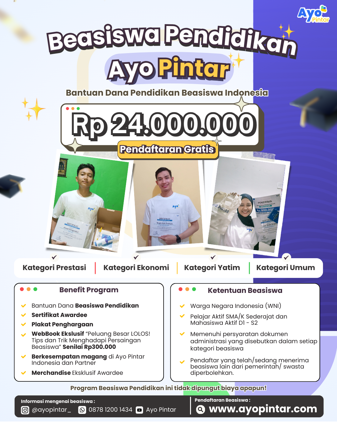- ✅ Komen postingan poster beasiswa di Instagram @ayopintar_ dan tag 3 bestie kamu! Contoh: "Yuk ikut daftar beasiswa ini 🥳✨ @yavarafaf11 @vaniadilla22 @Rahmann999"